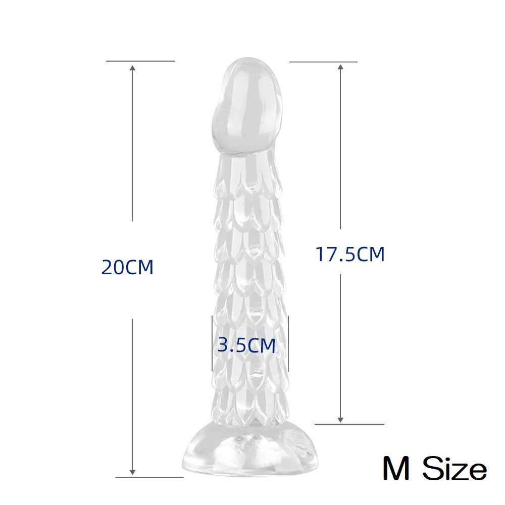 このディルドの最大の特徴である、彫刻のような鱗状のデザインが、あなたの感覚を深く揺さぶります。挿入時、細やかな突起が一つ一つしっかりと身体に触れ、心地よい摩擦を生み出しながらも、滑らかな感触が持続します。この特別なテクスチャーが、従来のディルドでは味わえない新しい快感を引き出し、より深い刺激をもたらします。