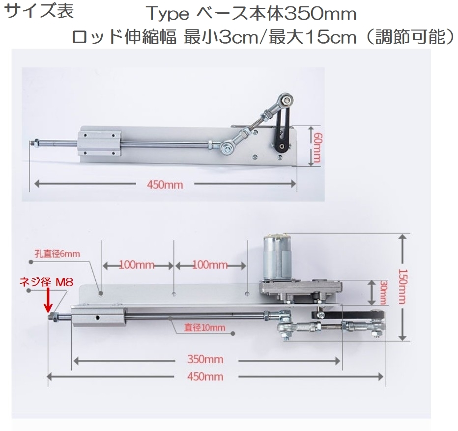 ■ピストンストローク): 約30mm 〜 150mm(ベース本体350mm)