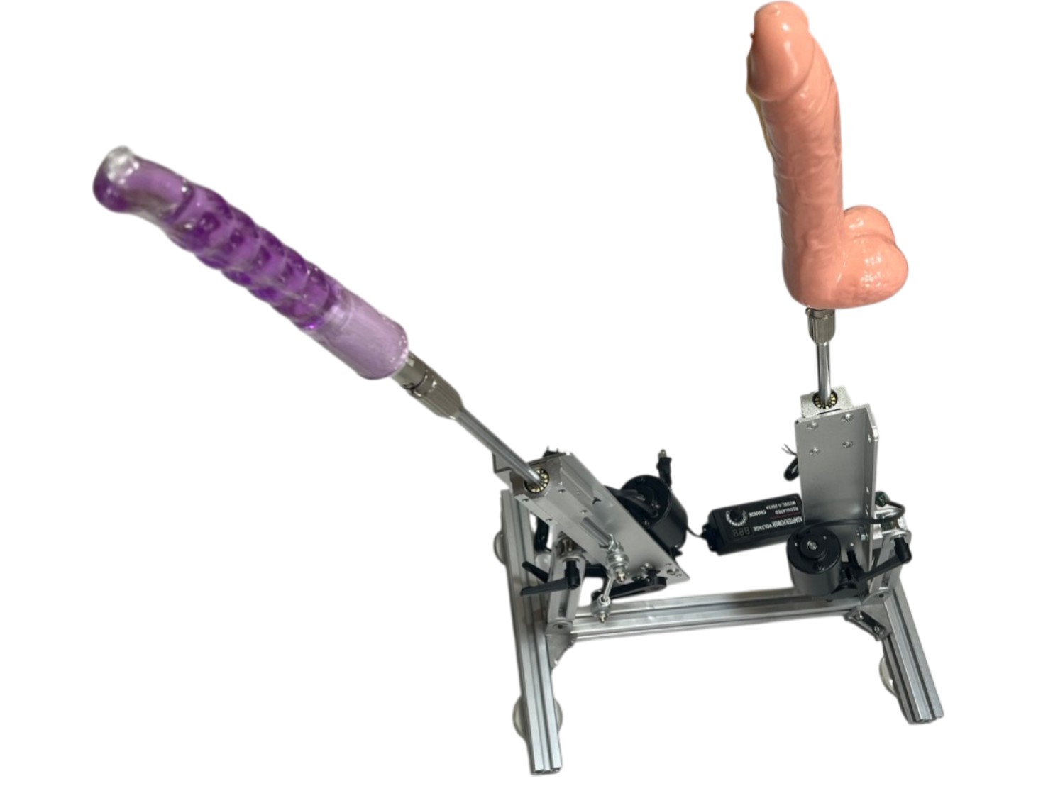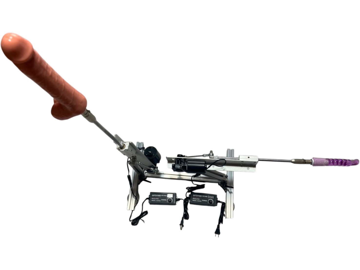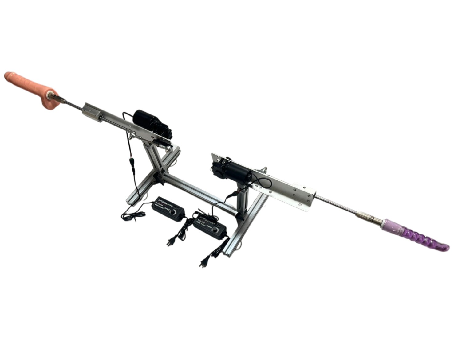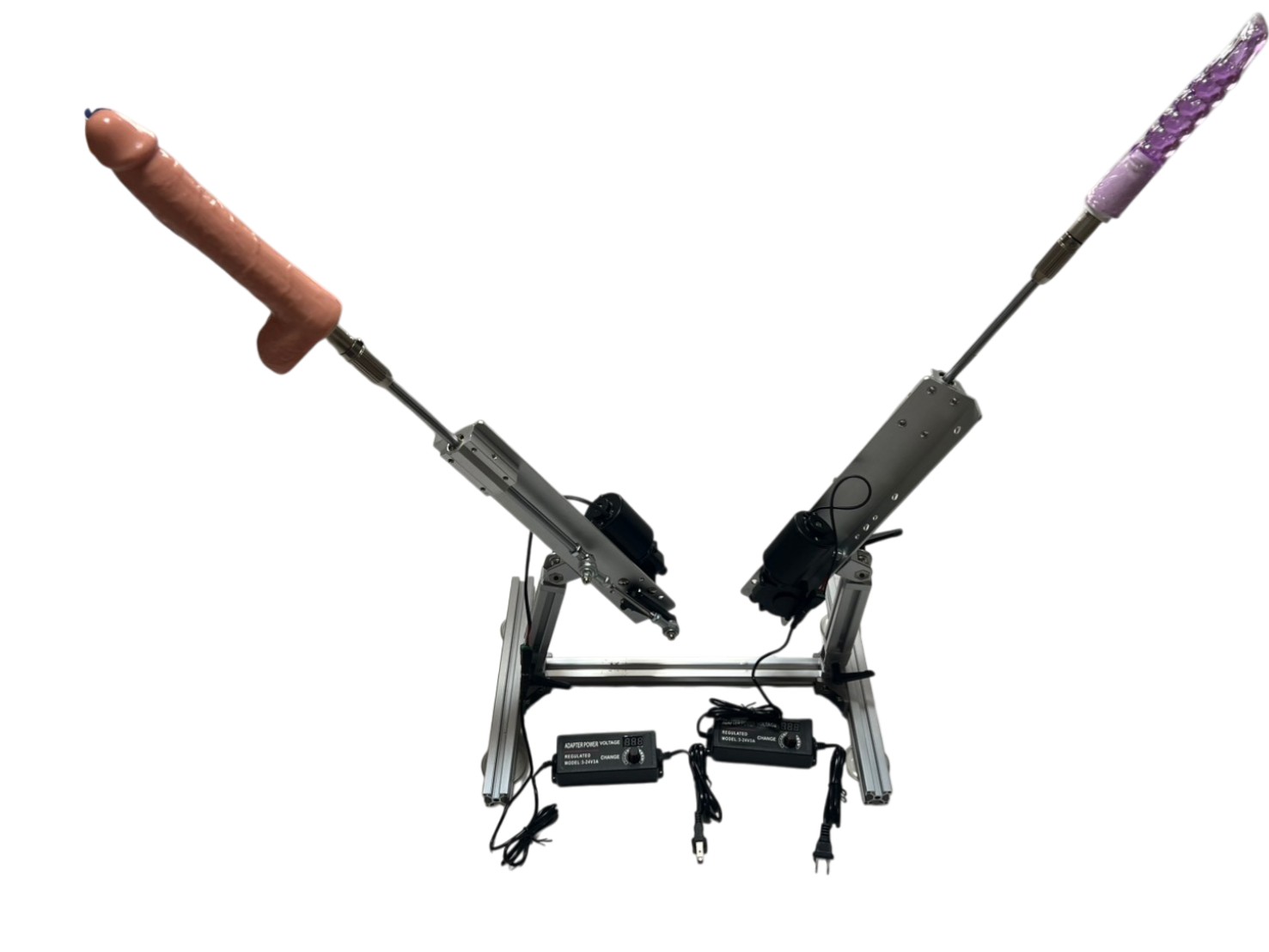 単なるピストンマシンの域を超え、二つの「心臓」が独自の角度で交差・連動するその姿は、まさに絶頂を強制するために設計された精密な産業機械です。