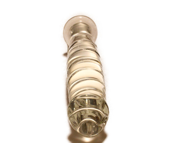 綺麗なガラスディルドです。極上の気持ち良さを体験できます。立派な亀頭はツルッとしてて陰部へ挿入しやすくなっています。ガラスディルドならではの挿入感です。らせん状に線模様が入っていますが、この線模様は少し凸凹しています。そして膣内の中で満遍なく当たりますので、ピストン運動を繰り返せばその気持ち良さを体験できます。又、特徴的なのは根元部分の金玉です。ポッコリ立ち上がってます。根元までズッポリ挿入し咥えた時に、小陰唇の周辺にヒットします。ヒットさせてから少しひねったり、軽く押し付けたりすることで極上の快感を生んでくれます。ガラスディルドがビッショリと濡れていく様をご堪能頂けます。